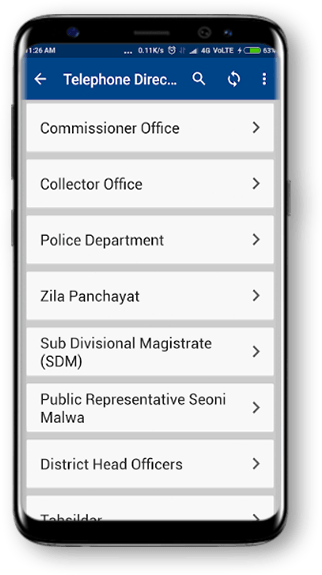 Telephone directory application Hoshangabad district administration under Hoshangabad Hoshangabad district e-governance has been developed by the Society's application, the purpose of the district citizens, and officials / employees of the district through a mobile application to link all departments and intuitive access to be provided